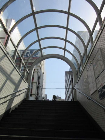 そして出口の目の前に坂道……あれこれが軽子坂?