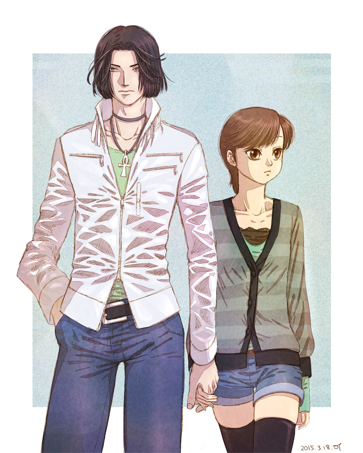 ブログのバナー用に明×ヒロイン絵を描きました。