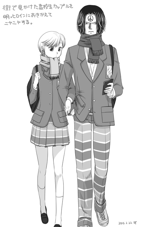 どうでもいいけど初めてブレザーを閉めてる宮本を描きました。
