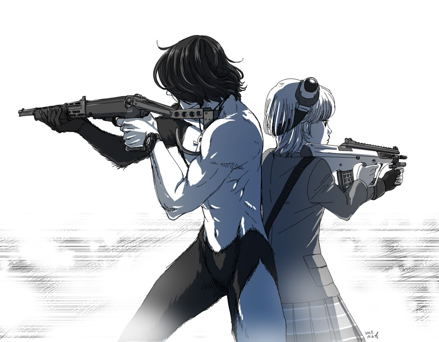 本当はバレットM90を描きたかったんですけど、どうしてもハイタッチ絵が描きたくていつもは銃メインに構図を取ってたのを人物メインにしたために断念。