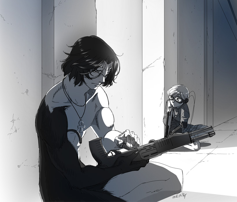 メガテンも銃も好きなのに銃を持たせた絵ってあまり描いた事がなかった! 不覚!