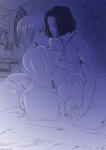 最初は人物だけのつもりだったのが描いた後に背景も欲しくなって描いたのでいろいろとアレなんですけど、背景で「ここラブホじゃないんだな」「男の部屋だな」って分かるのいいなって思います。