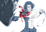 以前もハイタッチでそんな雰囲気のものを描いたんですけどもっとボロッボロの血まみれになってるだろうなと思ってたので今回は流血重視。