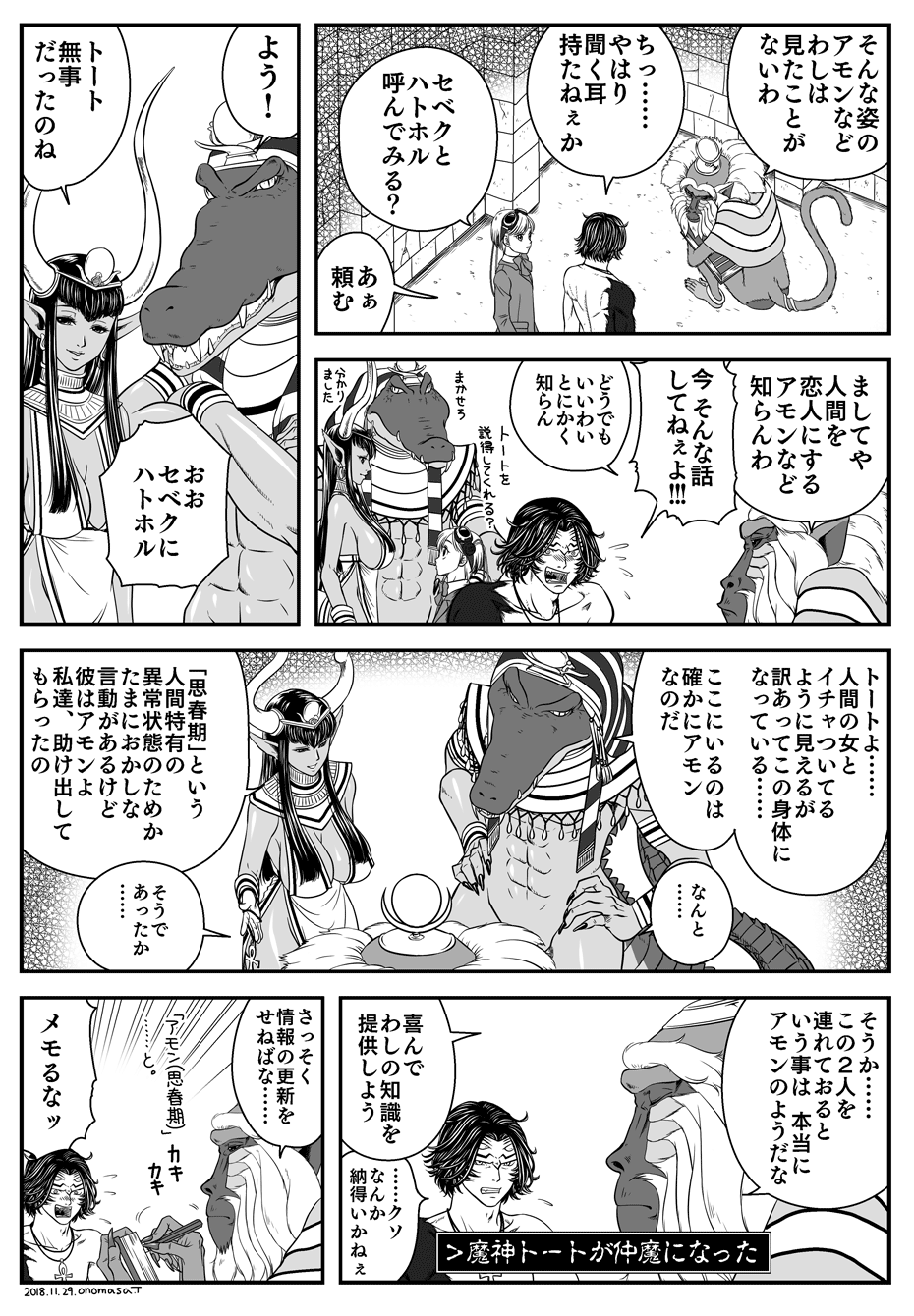 ハトホルとセベクは以前描いたのでトートも描きたかったというところから生まれたネタ。