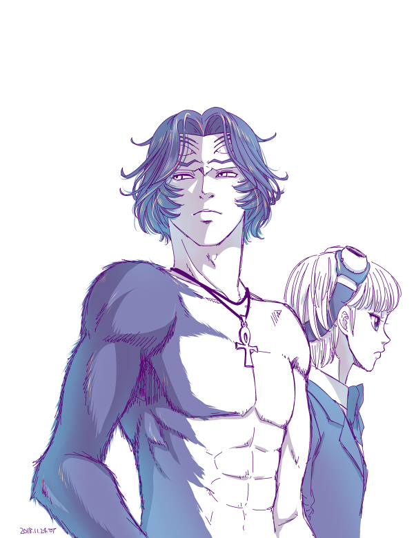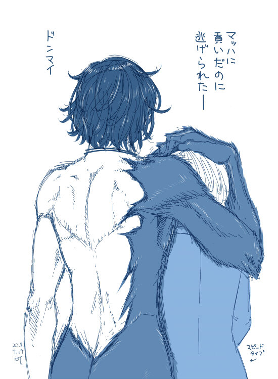 診断メーカーで出たお題(背中に文字を書いて当てっこ)でラクガキ。