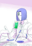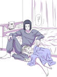 診断メーカーで出たお題(宅飲みで酔って絡み酒、最終的に気分が悪くなり介抱された挙句寝落ちした)でラクガキ。