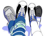 赤のスニーカーもかわいい。