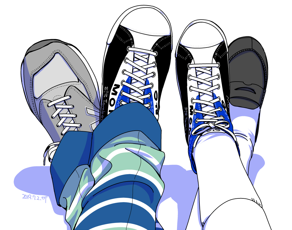 上の絵、程よい距離で隣に座ってるイメージだったんですけどよくよく考えたらこのくらい密着してないとできないなと思って描いた。